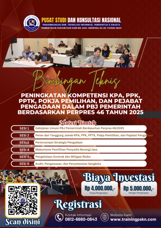 Bimtek peningkatan kompetensi KPA, PPK, PPTK, Pokja Pemilihan, dan Pejabat Pengadaan sesuai Perpres 46/2025 untuk tata kelola PBJ.
