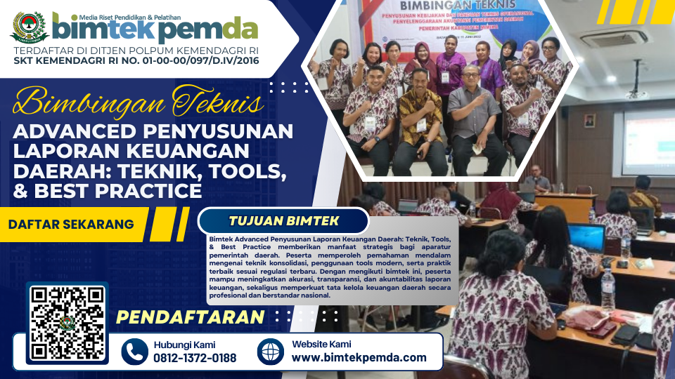 Bimtek Advanced Penyusunan Laporan Keuangan Daerah dengan teknik, tools, dan best practice terbaru untuk tingkatkan akurasi dan transparansi.