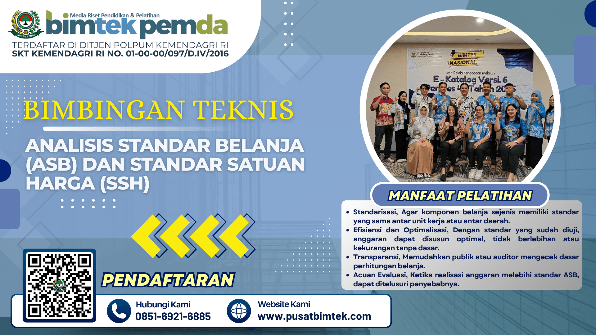 Pelatihan intensif Bimtek Analisis Standar Belanja (ASB) dan Standar Satuan Harga (SSH) untuk meningkatkan akurasi anggaran dan efisiensi pengadaan pemerintah