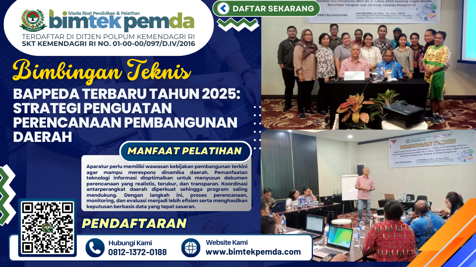 Panduan lengkap Bimtek Bappeda Terbaru Tahun 2025, tujuan, manfaat, materi, jadwal, serta strategi peningkatan kapasitas perencanaan pembangunan daerah.