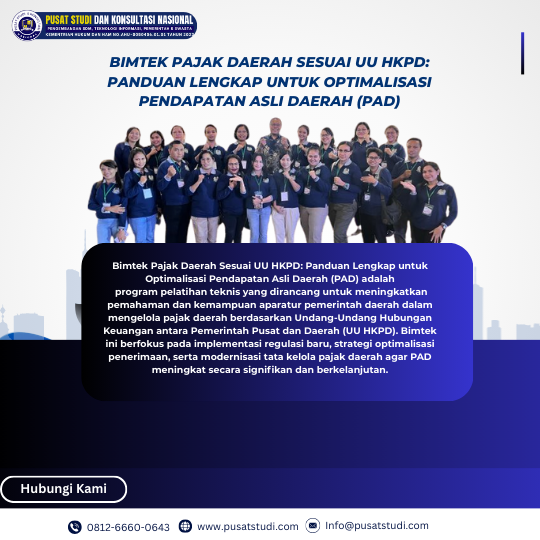 Untuk pemerintah daerah yang ingin memperkuat kapasitas fiskal, meningkatkan profesionalisme pengelolaan pajak, serta mempercepat implementasi UU HKPD, mengikuti Bimtek Pajak Daerah adalah langkah strategis dan wajib dilakukan.