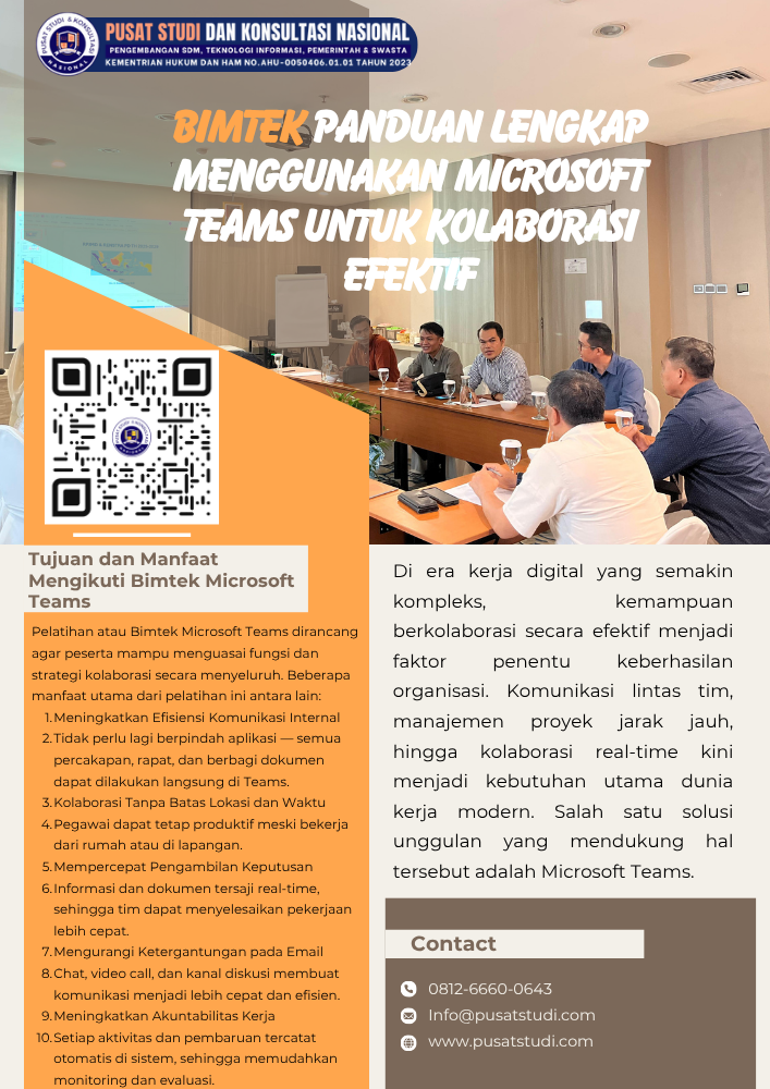 Pelajari cara efektif menggunakan Microsoft Teams melalui bimtek profesional untuk meningkatkan kolaborasi digital dan produktivitas kerja organisasi Anda.