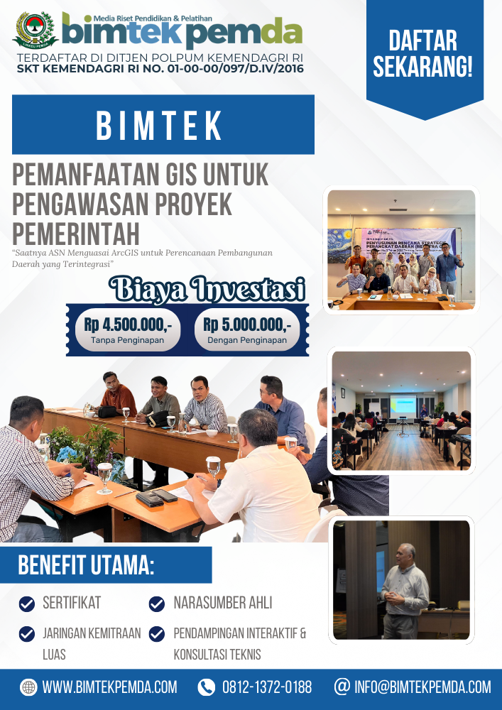 Bimtek pemanfaatan GIS untuk pengawasan proyek pemerintah menjadi langkah strategis dalam meningkatkan kapasitas ASN agar mampu memanfaatkan teknologi spasial secara optimal. Artikel ini membahas secara komprehensif peran GIS dalam pengawasan proyek, urgensi bimtek GIS bagi ASN, strategi implementasi, serta manfaat nyata bagi tata kelola pemerintahan.