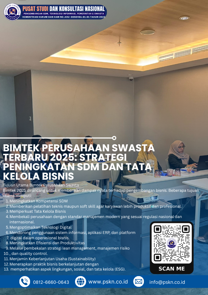 Sumber Link: Bimtek Perusahaan Swasta Terbaru 2025: Strategi Peningkatan SDM dan Tata Kelola Bisnis – PSKN