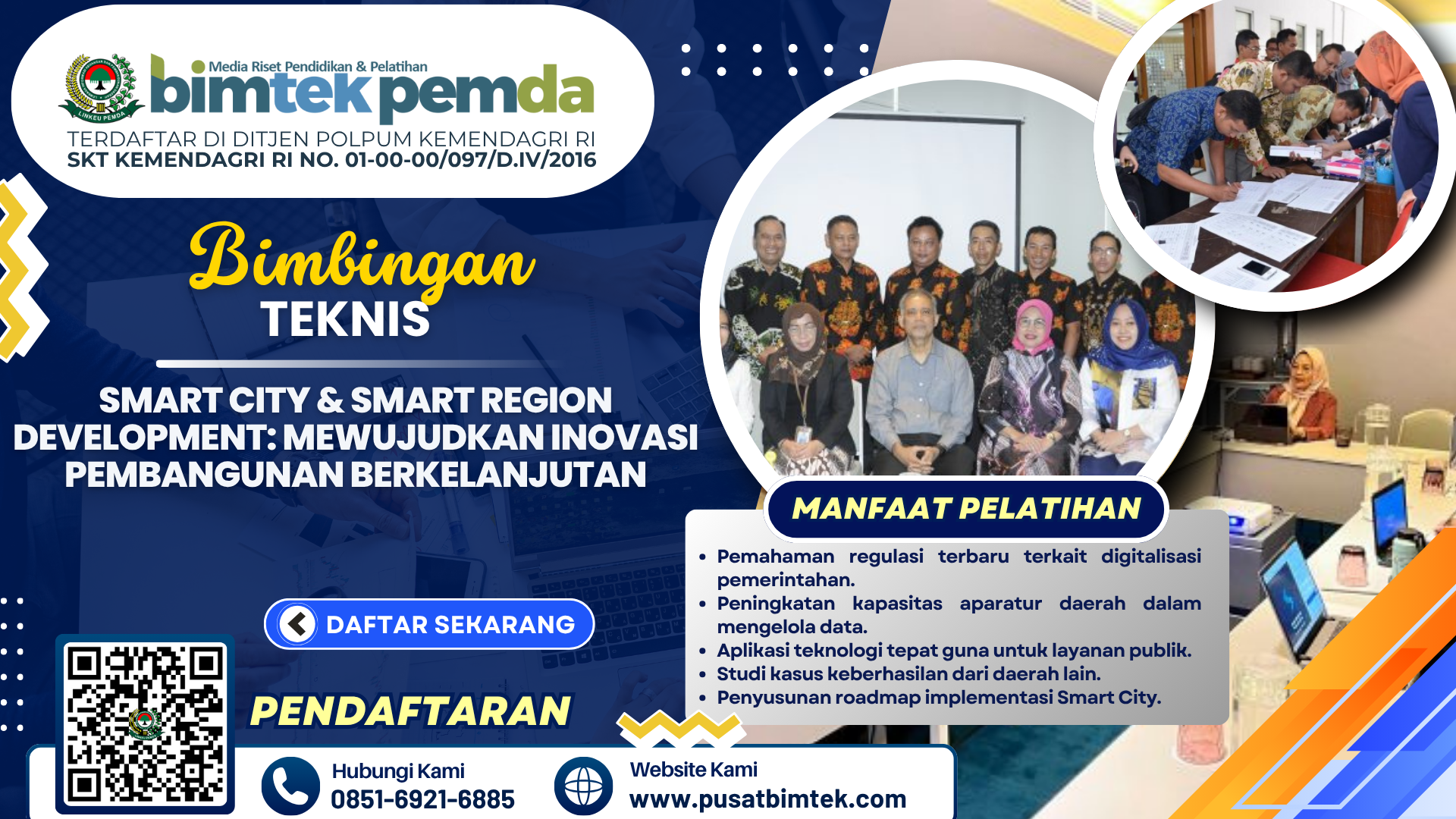Segera daftarkan instansi Anda dalam program Bimtek Smart City & Smart Region Development untuk membangun daerah yang lebih inovatif, efisien, dan berkelanjutan.