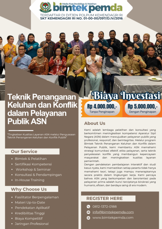 03 Okt Bimtek Pemda Bimtek Sertifikasi Kompetensi Pejabat Pengadaan: Langkah Strategis Tingkatkan Kredibilitas dan Karier Ditulis oleh Pusat Diklat Pemerintahan 03/10/2025 Lanjutkan membaca