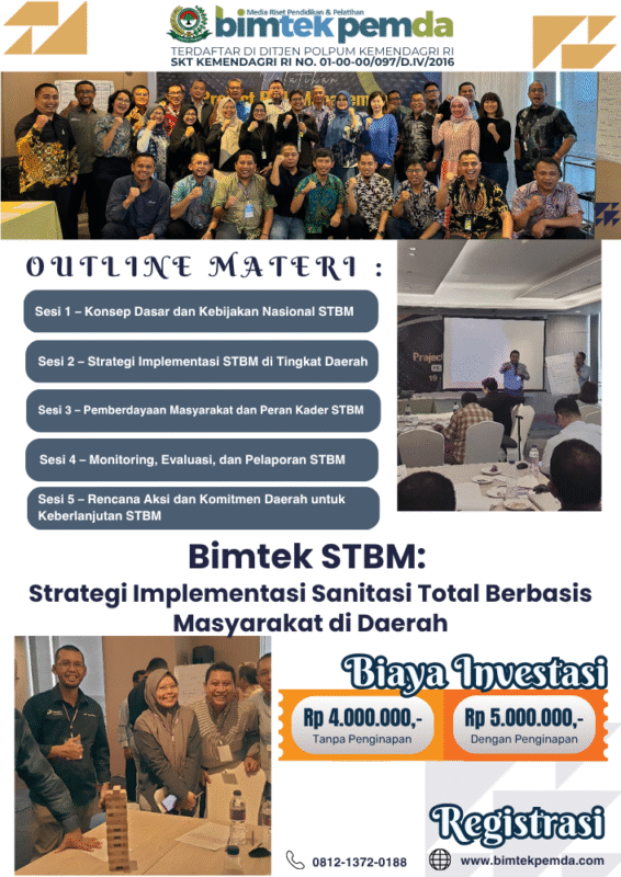 14 Okt Bimtek Pemda Bimtek STBM: Strategi Implementasi Sanitasi Total Berbasis Masyarakat di Daerah Ditulis oleh Pusat Diklat Pemerintahan 14/10/2025 Lanjutkan membaca
