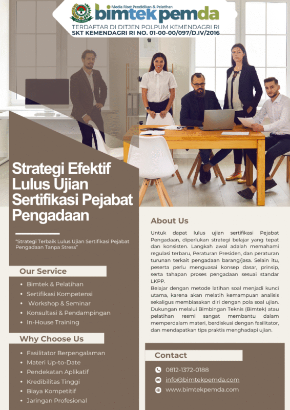 03 Okt Bimtek Pemda Strategi Efektif Lulus Ujian Sertifikasi Pejabat Pengadaan Ditulis oleh Pusat Diklat Pemerintahan 03/10/2025 Lanjutkan membaca