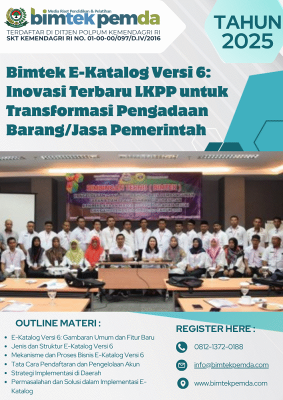 09 Okt Bimtek Pemda Panduan Teknis Pendaftaran Vendor pada E-Katalog Versi 6 Ditulis oleh Pusat Diklat Pemerintahan 09/10/2025 Lanjutkan membaca