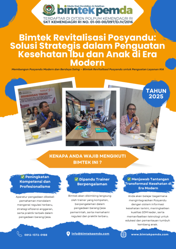 09 Okt Bimtek Pemda Bimtek Revitalisasi Posyandu: Solusi Strategis dalam Penguatan Kesehatan Ibu dan Anak di Era Modern Ditulis oleh Pusat Diklat Pemerintahan 09/10/2025 Lanjutkan membaca