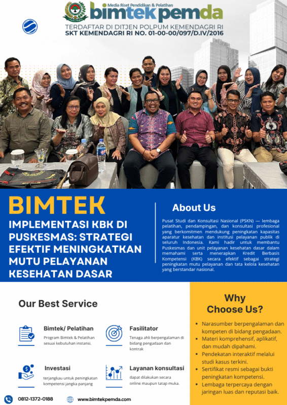 13 Okt Bimtek Pemda Bimtek Implementasi KBK di Puskesmas: Strategi Efektif Meningkatkan Mutu Pelayanan Kesehatan Dasar Ditulis oleh Pusat Diklat Pemerintahan 13/10/2025 Lanjutkan membaca