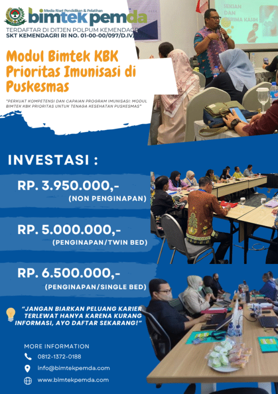 13 Okt Bimtek Pemda Modul Bimtek KBK Prioritas Imunisasi di Puskesmas Ditulis oleh Pusat Diklat Pemerintahan 13/10/2025 Lanjutkan membaca