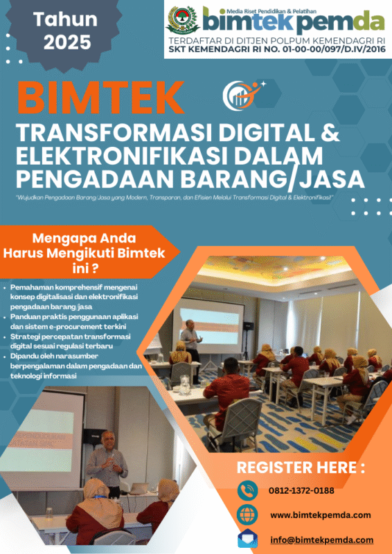 02 Okt Bimtek Pemda Peran Bimtek dalam Peningkatan Kapasitas Aparatur Pengadaan Ditulis oleh Pusat Diklat Pemerintahan 02/10/2025 Lanjutkan membaca