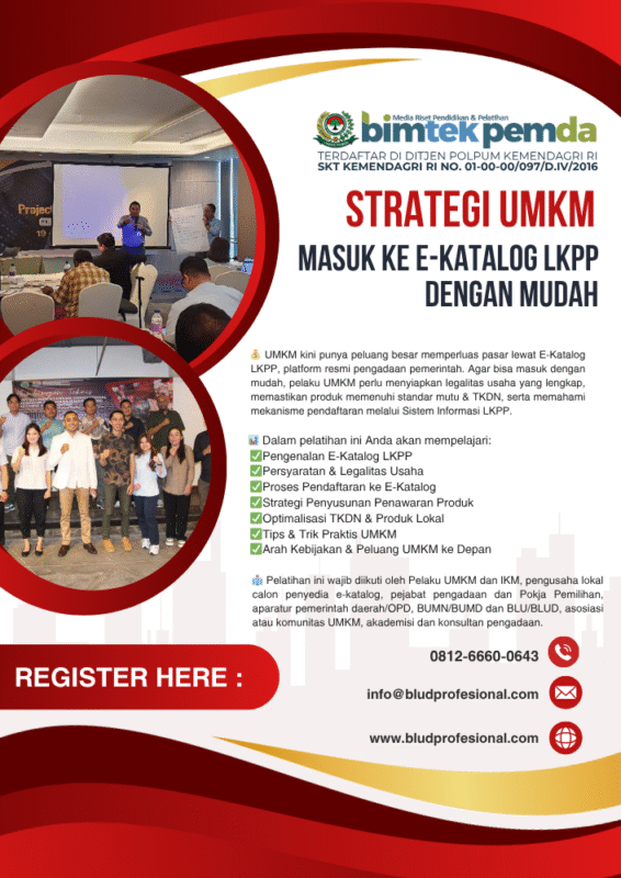 30 Sep Bimtek Pemda Strategi UMKM Masuk ke E-Katalog LKPP dengan Mudah Ditulis oleh Pusat Diklat Pemerintahan 30/09/2025 Lanjutkan membaca