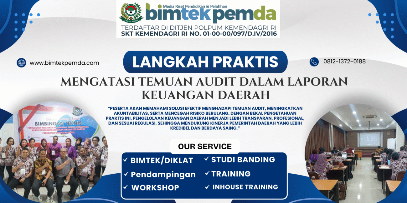 17 Sep Bimtek Pemda Langkah Praktis Mengatasi Temuan Audit dalam Laporan Keuangan Daerah Ditulis oleh Pusat Diklat Pemerintahan 17/09/2025 Lanjutkan membaca