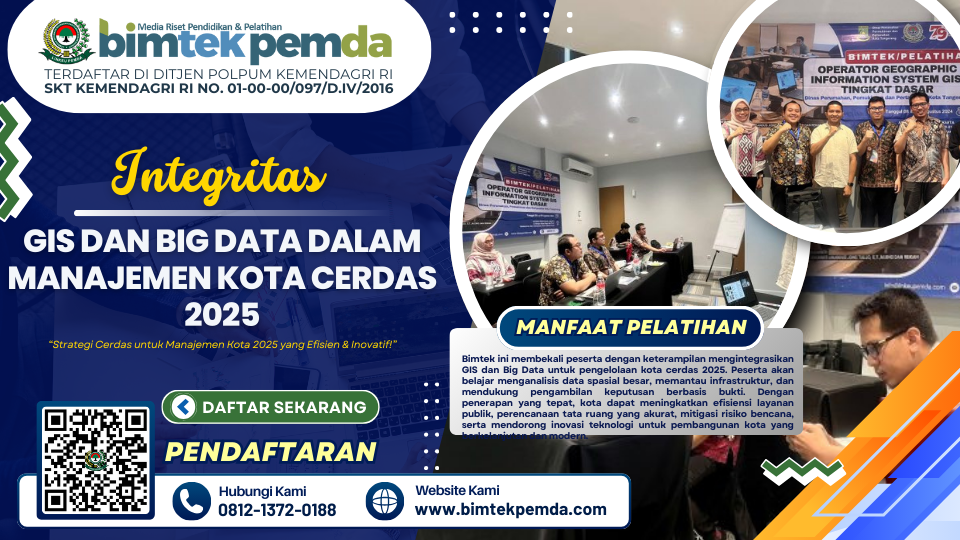 11 Sep Bimtek Pemda Integrasi GIS dan Big Data dalam Manajemen Kota Cerdas 2025 Ditulis oleh Pusat Diklat Pemerintahan 11/09/2025 Lanjutkan membaca