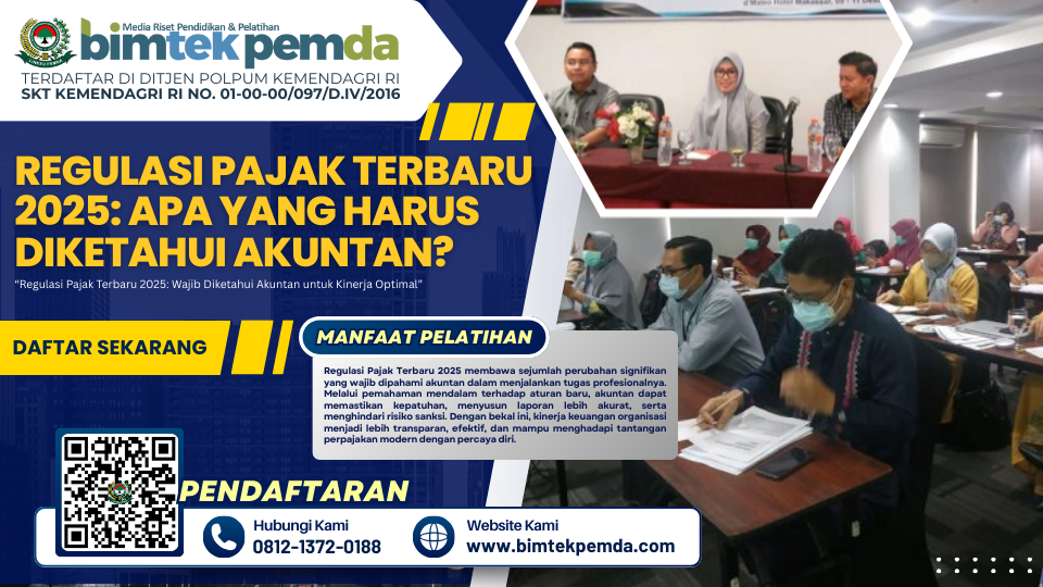 15 Sep Bimtek Pemda Regulasi Pajak Terbaru 2025: Apa yang Harus Diketahui Akuntan Ditulis oleh Pusat Diklat Pemerintahan 15/09/2025 Lanjutkan membaca
