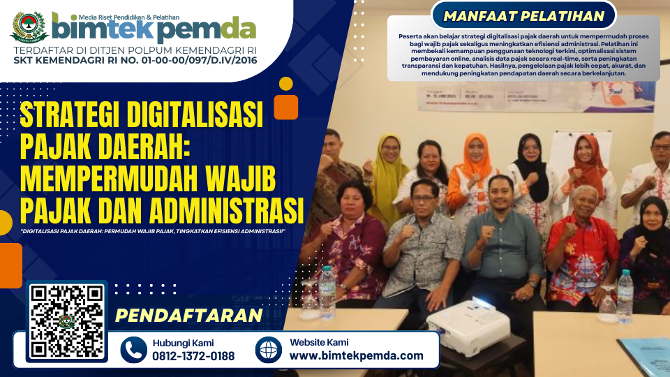 16 Sep Bimtek Pemda Strategi Digitalisasi Pajak Daerah: Mempermudah Wajib Pajak dan Administrasi Ditulis oleh Pusat Diklat Pemerintahan 16/09/2025 Lanjutkan membaca
