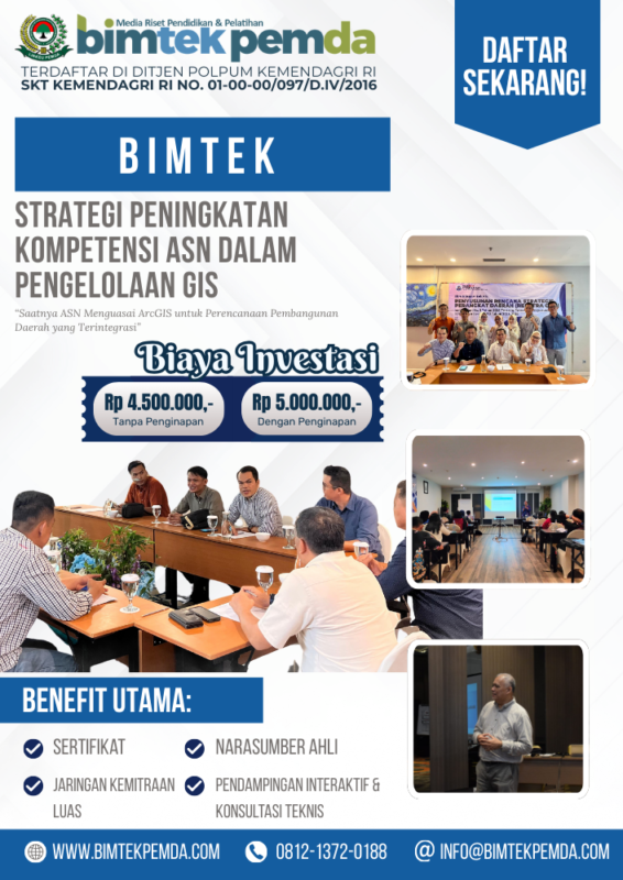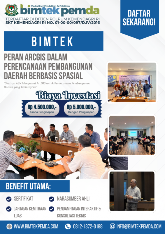 08 Jan Bimtek Pemda Peran ArcGIS dalam Perencanaan Pembangunan Daerah Berbasis Spasial Ditulis oleh Pusat Diklat Pemerintahan 08/01/2026 Lanjutkan membaca