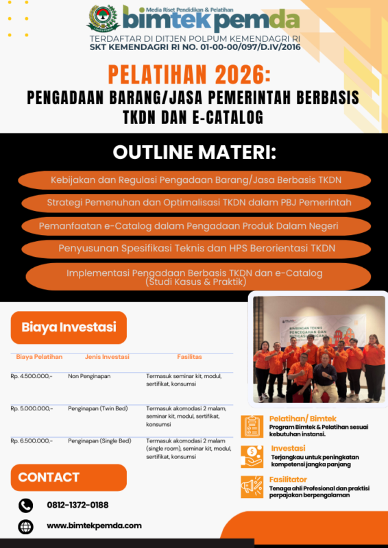 08 Jan Bimtek Pemda Pelatihan 2026: Pengadaan Barang/Jasa Pemerintah Berbasis TKDN dan e-Catalog Ditulis oleh Pusat Diklat Pemerintahan 08/01/2026 Lanjutkan membaca