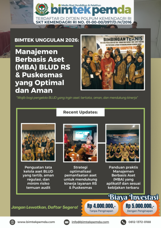 05 Jan Bimtek Pemda Bimtek Unggulan 2026: Manajemen Berbasis Aset (MBA) BLUD RS & Puskesmas yang Optimal dan Aman Ditulis oleh Pusat Diklat Pemerintahan 05/01/2026 Lanjutkan membaca