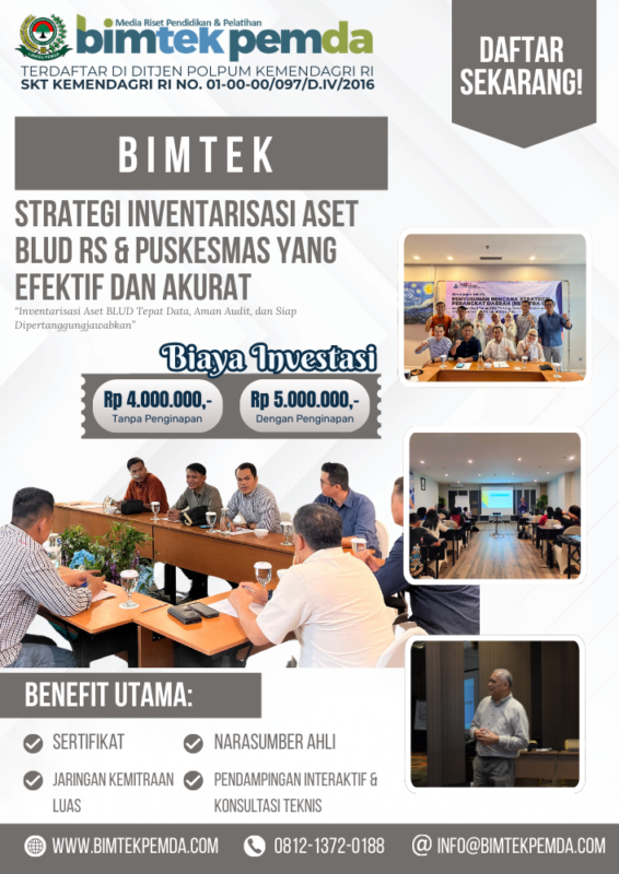 05 Jan Bimtek Pemda Strategi Inventarisasi Aset BLUD RS & Puskesmas yang Efektif dan Akurat Ditulis oleh Pusat Diklat Pemerintahan 05/01/2026 Lanjutkan membaca