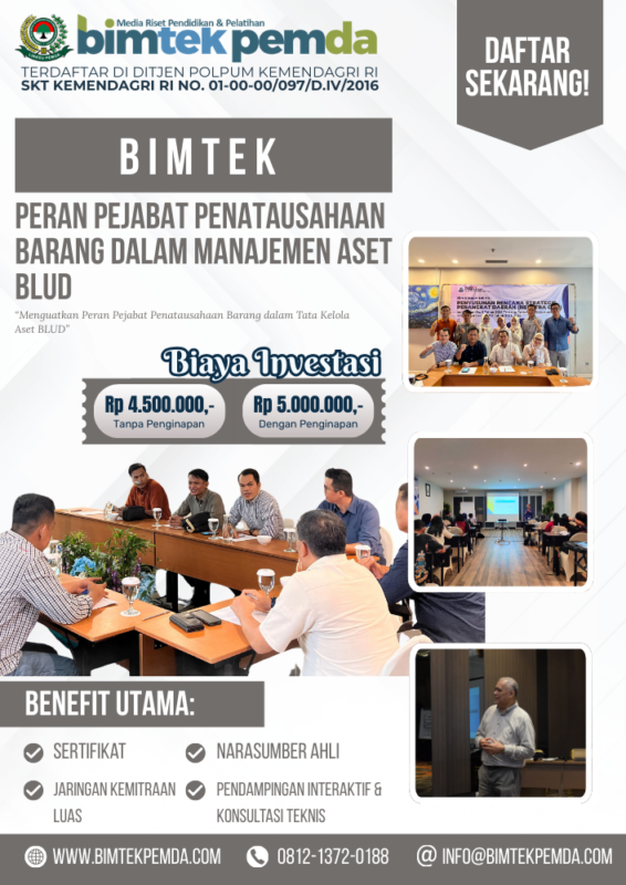 05 Jan Bimtek Pemda Peran Pejabat Penatausahaan Barang dalam Manajemen Aset BLUD Ditulis oleh Pusat Diklat Pemerintahan 05/01/2026 Lanjutkan membaca