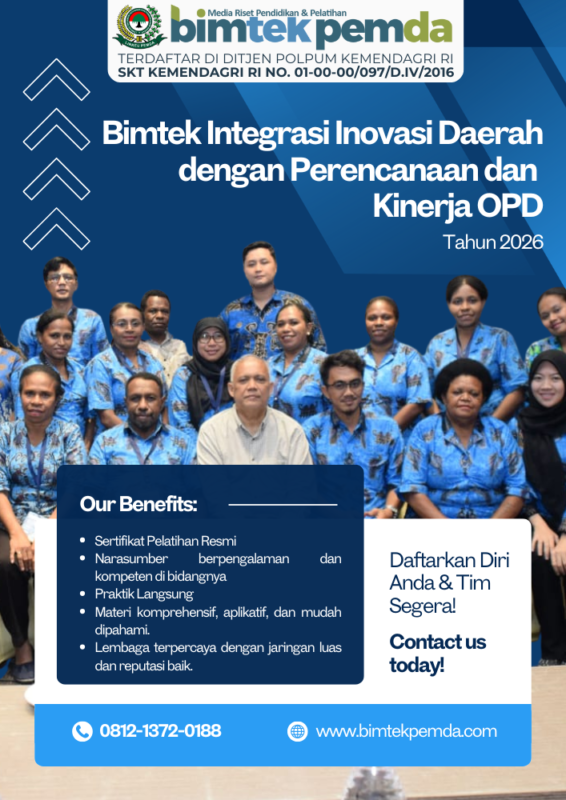 22 Des Bimtek Pemda Bimtek Terobosan 2026: Pelayanan Publik Naik Kelas Ditulis oleh Pusat Diklat Pemerintahan 22/12/2025 Lanjutkan membaca