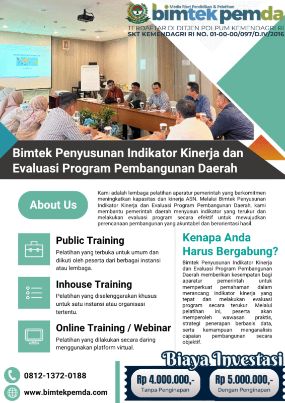 12 Nov Bimtek Pemda Bimtek Penyusunan Indikator Kinerja dan Evaluasi Program Pembangunan Daerah Ditulis oleh Pusat Diklat Pemerintahan 12/11/2025 Lanjutkan membaca