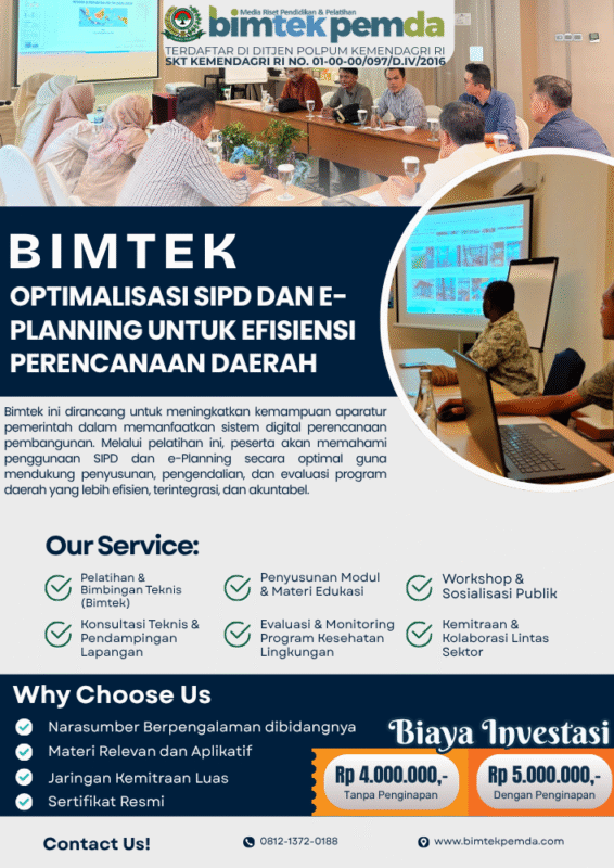 12 Nov Bimtek Pemda Bimtek Perencanaan Pembangunan Daerah Berbasis Data dan Kinerja: Mewujudkan Pemerintahan Efektif, Akuntabel, dan Berorientasi Hasil Ditulis oleh Pusat Diklat Pemerintahan 12/11/2025 Lanjutkan membaca