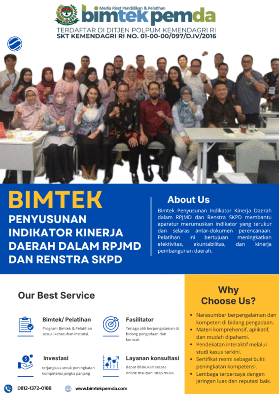 12 Nov Bimtek Pemda Bimtek Sinkronisasi RPJMD, Renstra SKPD, dan RKPD: Strategi Mewujudkan Perencanaan Pembangunan Daerah yang Efektif dan Terpadu Ditulis oleh Pusat Diklat Pemerintahan 12/11/2025 Lanjutkan membaca