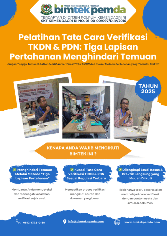25 Nov Bimtek Pemda Pelatihan Tata Cara Verifikasi TKDN & PDN: Tiga Lapisan Pertahanan Menghindari Temuan Ditulis oleh Pusat Diklat Pemerintahan 25/11/2025 Lanjutkan membaca