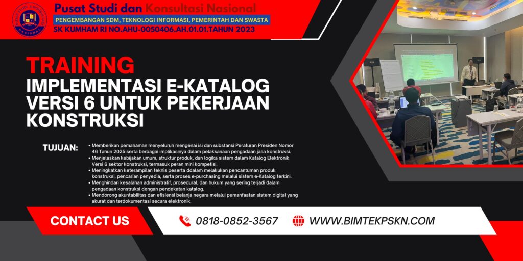 28 Sep Bimtek PSKN Training Implementasi E-Katalog Versi 6 Untuk Pekerjaan Konstruksi Ditulis oleh Pusat Diklat Pemerintahan 28/09/2025 Lanjutkan membaca