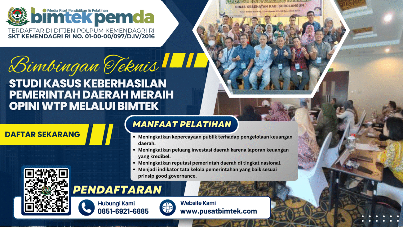09 Sep Pusat Bimtek Studi Kasus Keberhasilan Pemerintah Daerah Meraih Opini WTP Melalui Bimtek Ditulis oleh Pusat Diklat Pemerintahan 09/09/2025 Lanjutkan membaca