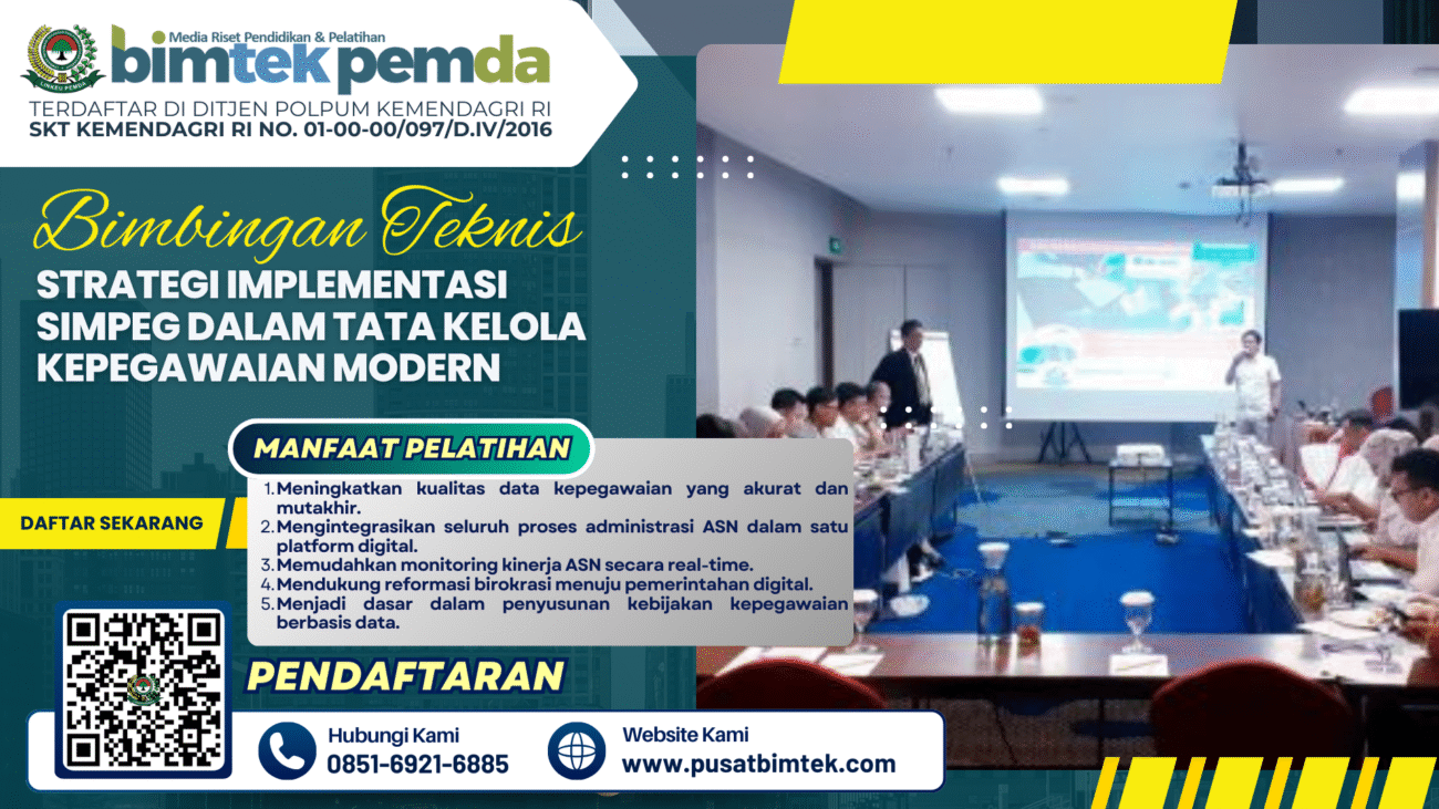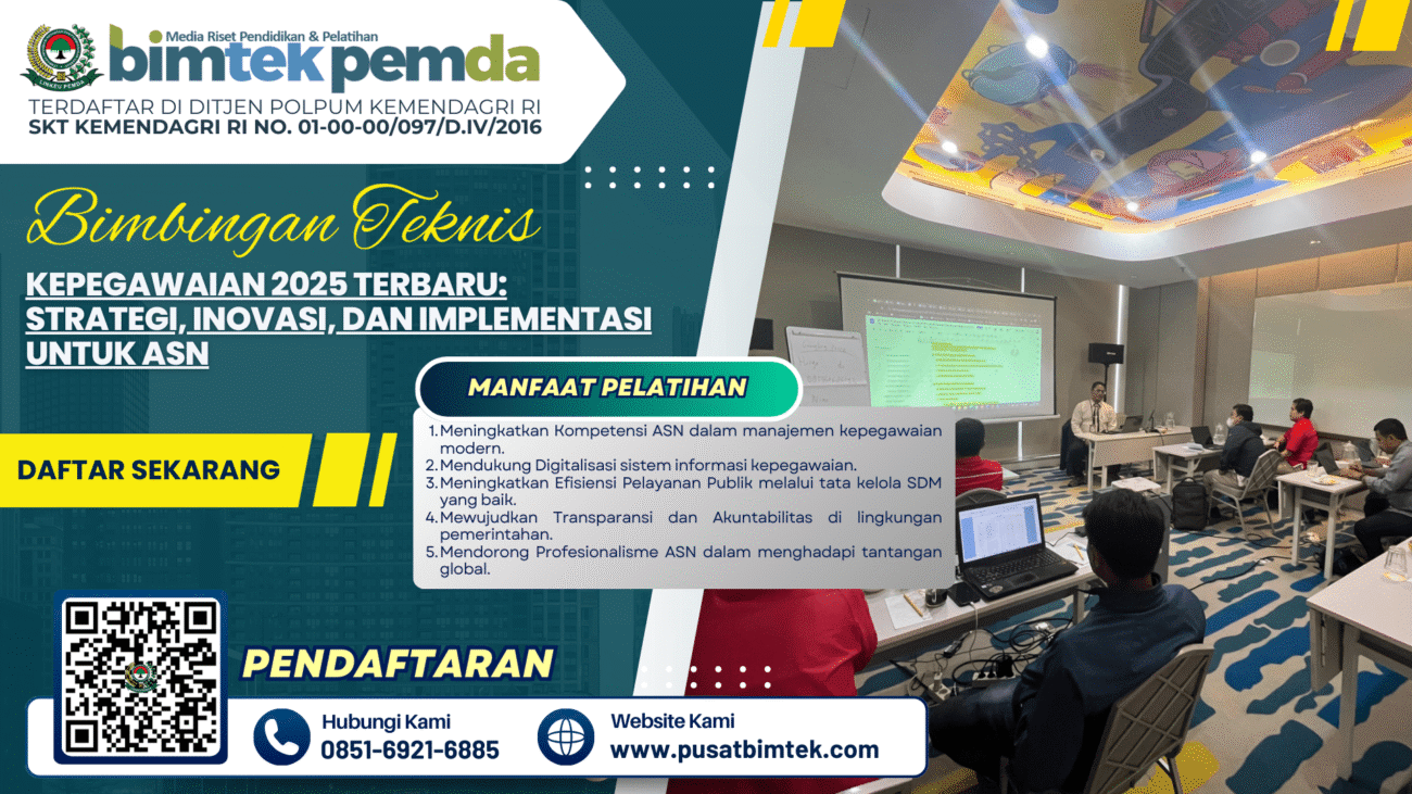08 Sep Pusat Bimtek Bimtek Kepegawaian 2025 Terbaru: Strategi, Inovasi, dan Implementasi untuk ASN Ditulis oleh Pusat Diklat Pemerintahan 08/09/2025 Lanjutkan membaca