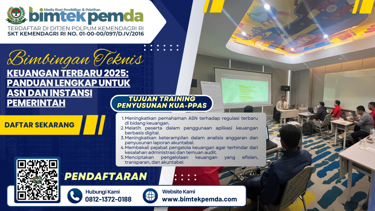03 Sep Pusat Bimtek BIMTEK Keuangan Terbaru 2025: Panduan Lengkap untuk ASN dan Instansi Pemerintah Ditulis oleh Pusat Diklat Pemerintahan 03/09/2025 Lanjutkan membaca