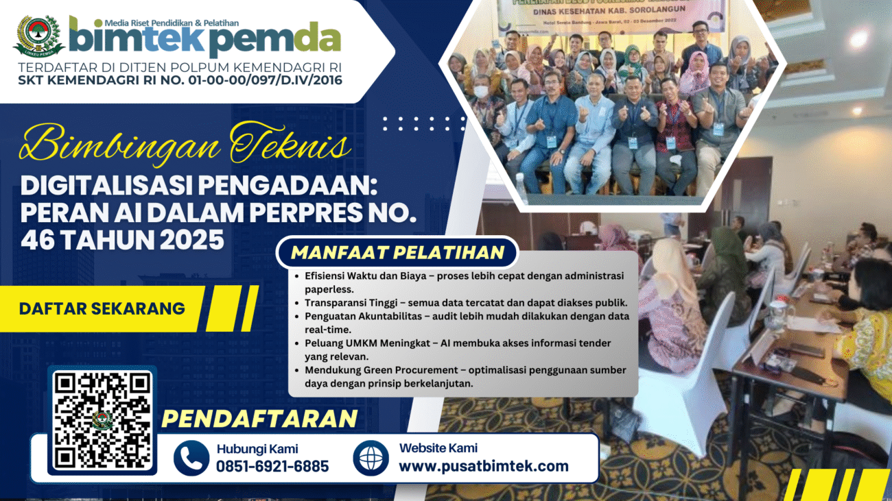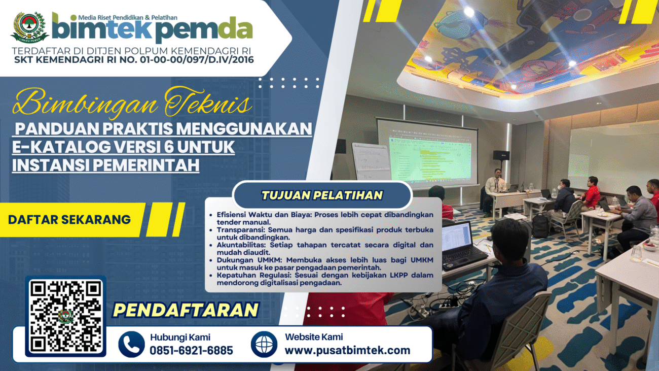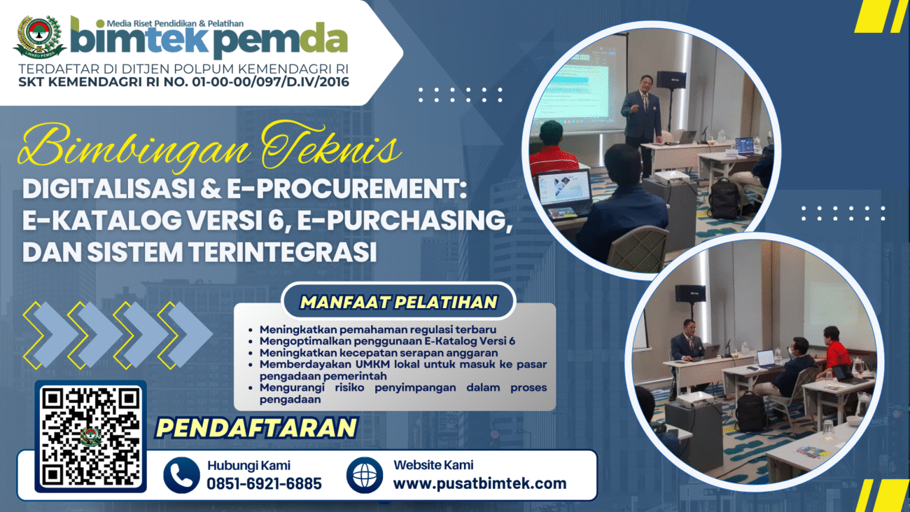 26 Sep Pusat Bimtek Bimtek Digitalisasi & E-Procurement: E-Katalog Versi 6, E-Purchasing, dan Sistem Terintegrasi Ditulis oleh Pusat Diklat Pemerintahan 26/09/2025 Lanjutkan membaca