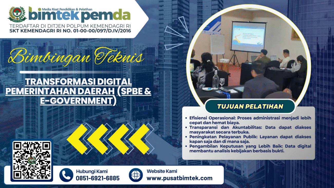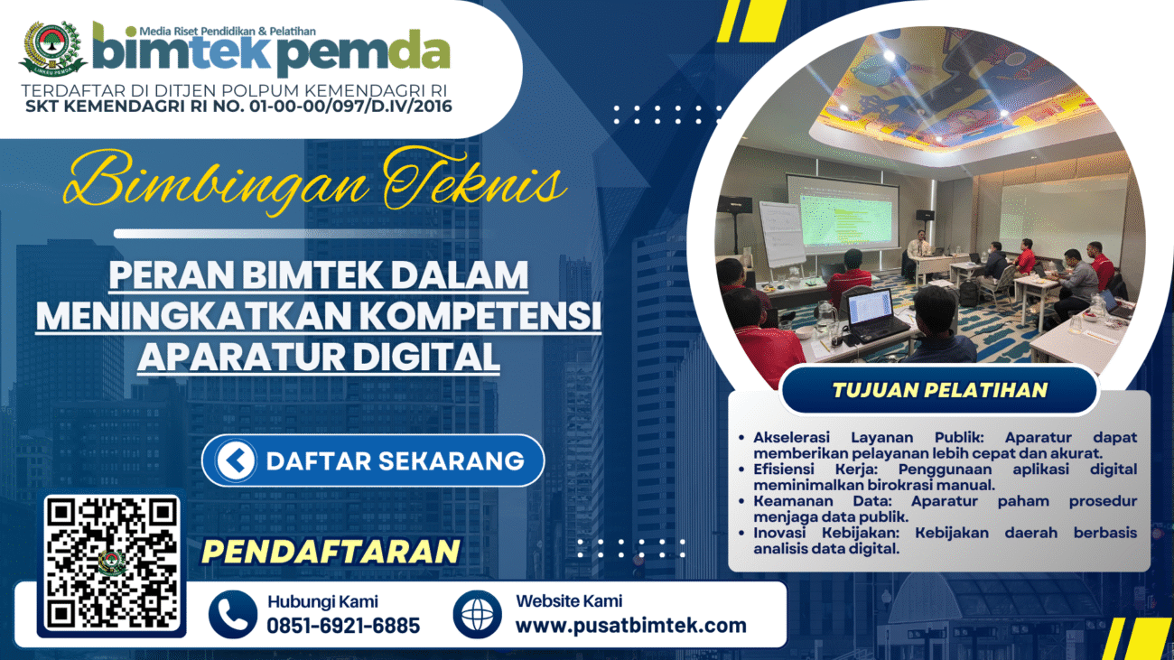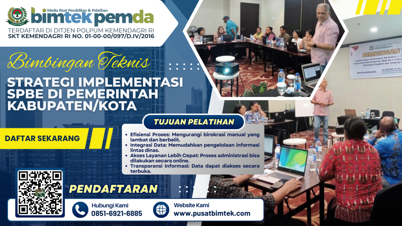 30 Sep Pusat Bimtek Bimtek Transformasi Digital Pemerintahan Daerah (SPBE & e-Government) Ditulis oleh Pusat Diklat Pemerintahan 30/09/2025 Lanjutkan membaca