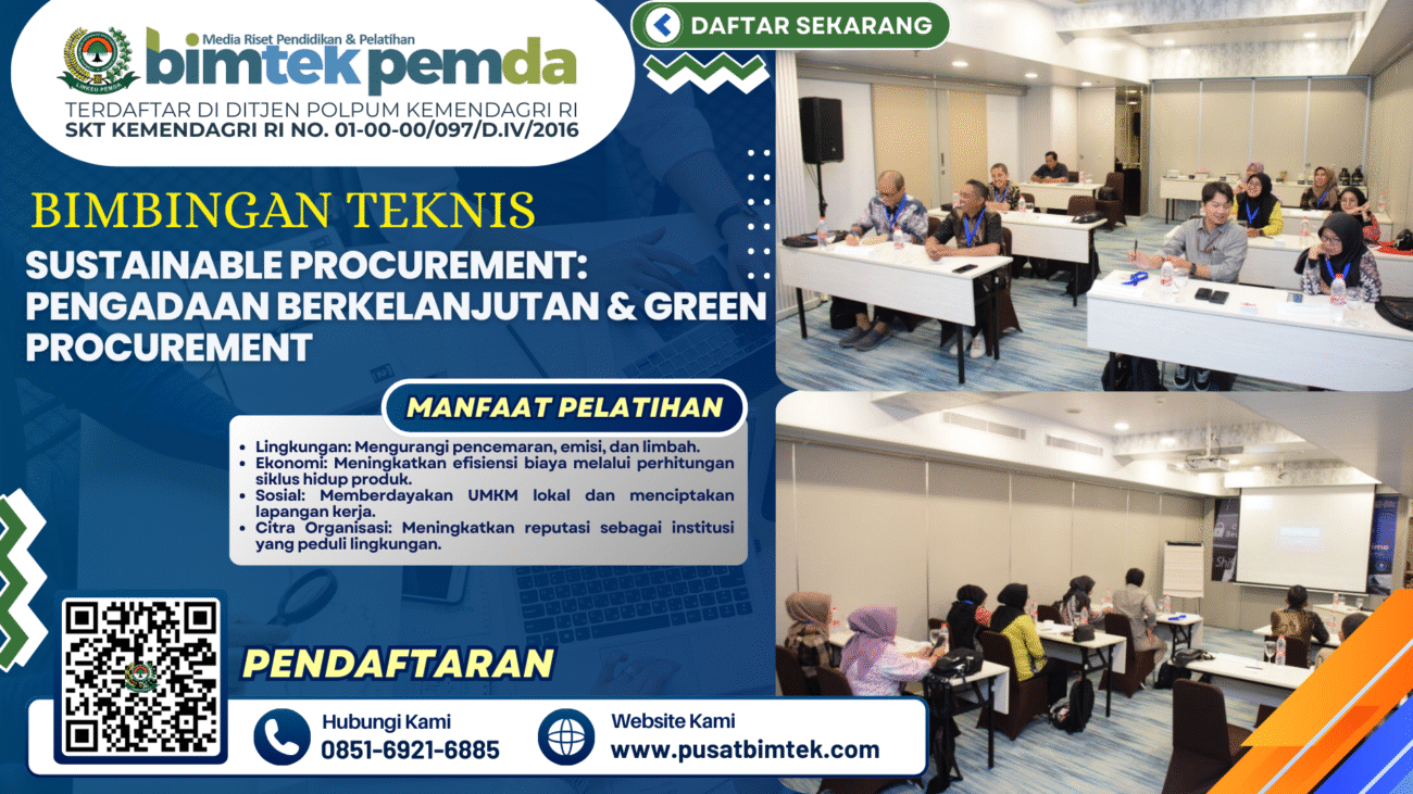 25 Sep Pusat Bimtek Bimtek Sustainable Procurement: Pengadaan Berkelanjutan & Green Procurement Ditulis oleh Pusat Diklat Pemerintahan 25/09/2025 Lanjutkan membaca