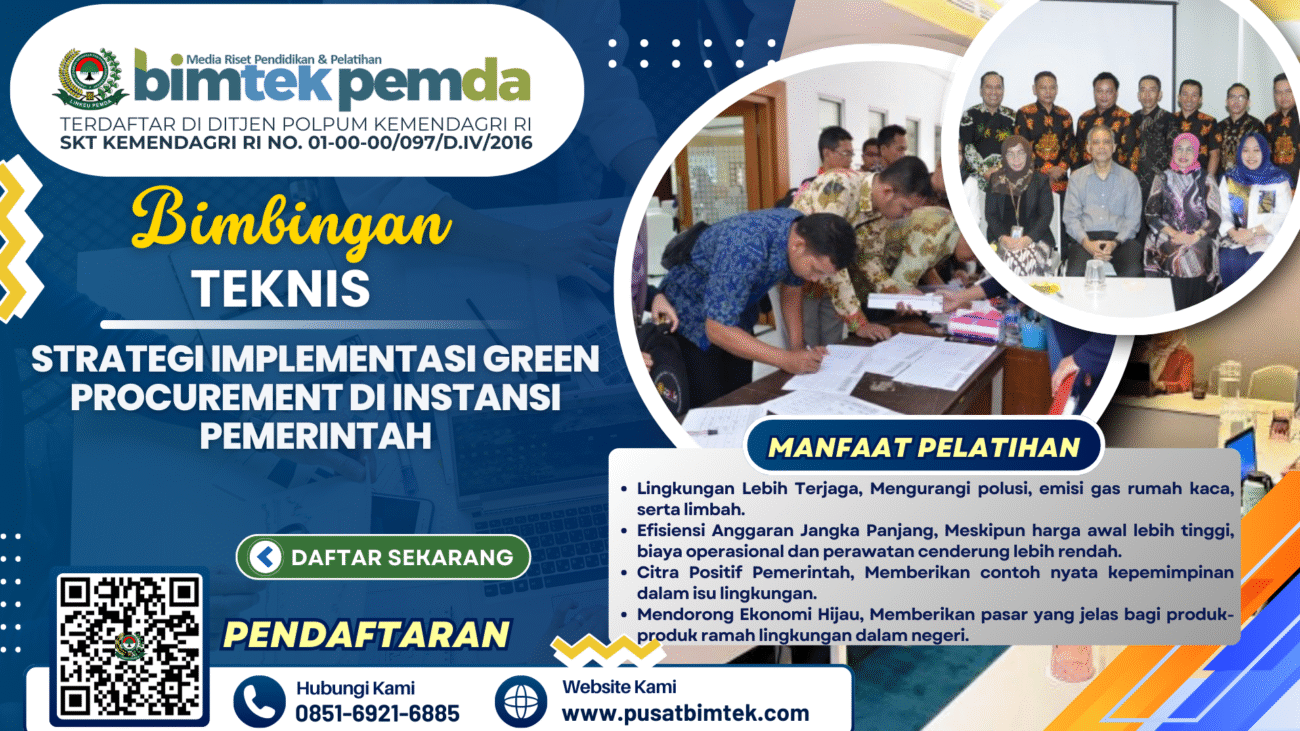 25 Sep Pusat Bimtek Bimtek Strategi Implementasi Green Procurement di Instansi Pemerintah Ditulis oleh Pusat Diklat Pemerintahan 25/09/2025 Lanjutkan membaca