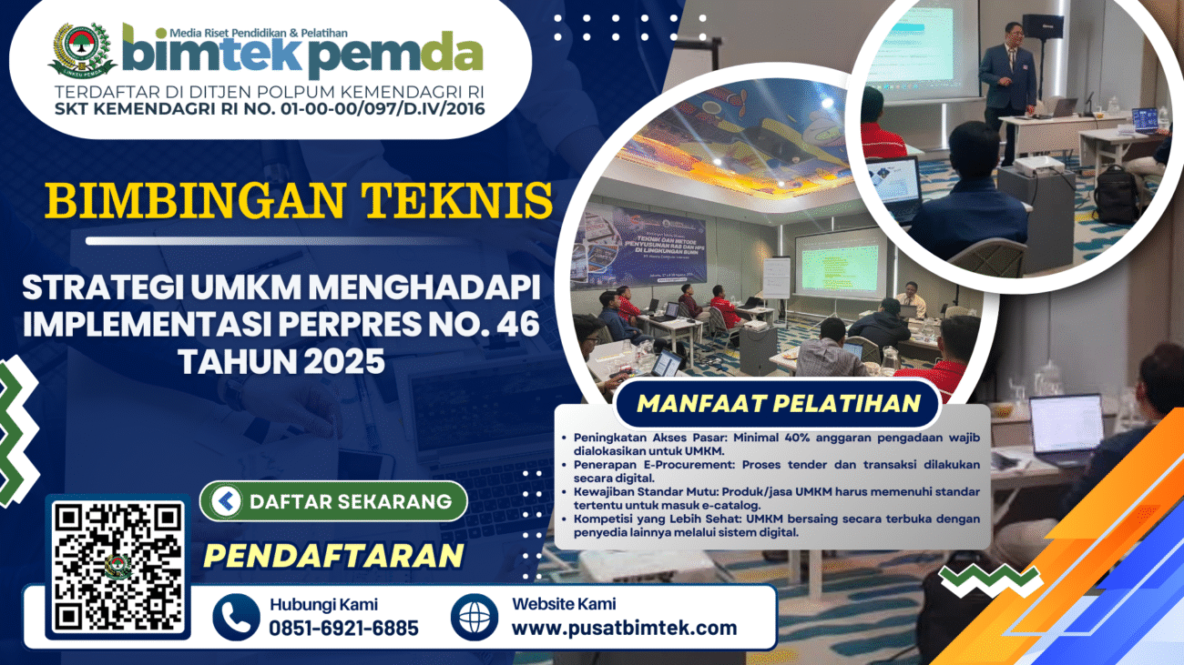 25 Sep Pusat Bimtek Bimtek Strategi UMKM Menghadapi Implementasi Perpres No. 46 Tahun 2025 Ditulis oleh Pusat Diklat Pemerintahan 25/09/2025 Lanjutkan membaca