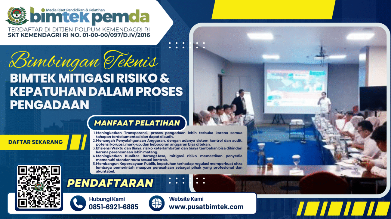26 Sep Pusat Bimtek Bimtek Mitigasi Risiko & Kepatuhan dalam Proses Pengadaan Ditulis oleh Pusat Diklat Pemerintahan 26/09/2025 Lanjutkan membaca