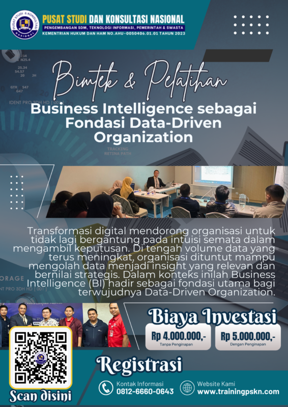 Artikel ini membahas secara komprehensif peran Business Intelligence sebagai fondasi organisasi berbasis data, sekaligus menjadi artikel turunan yang memperkuat konsep utama dalam artikel Pelatihan Data-Driven Decision Making: Merubah Data Jadi Aksi Bisnis Strategis
