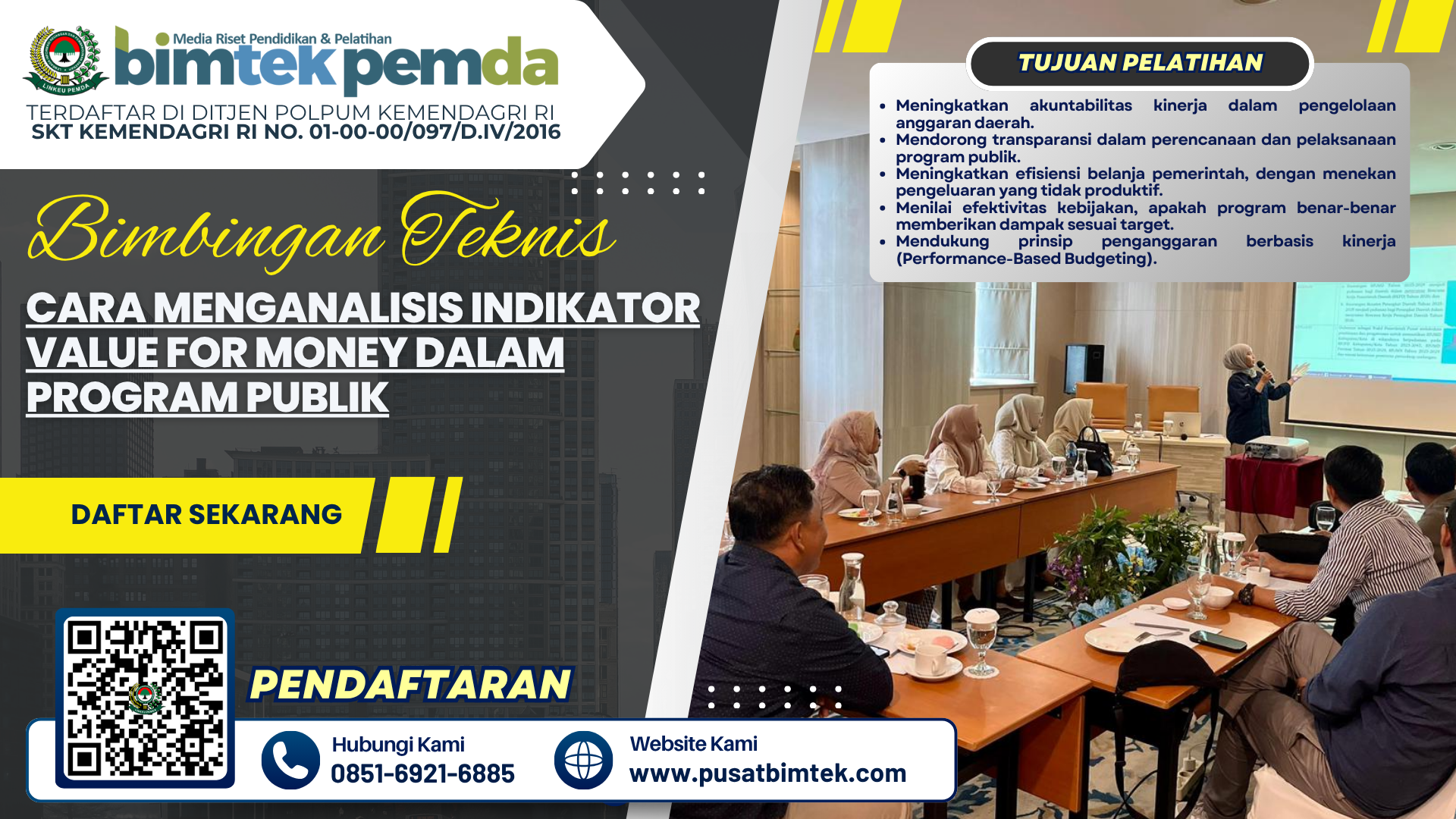 Dengan menerapkan konsep ini, pemerintah dapat memastikan bahwa setiap program memiliki nilai tambah dan mendukung pencapaian visi pembangunan daerah. Pendekatan ini juga menjadi materi utama dalam Bimtek Perencanaan dan Penganggaran Terpadu dengan Prinsip Value for Money, yang membekali aparatur daerah dalam menerapkan praktik terbaik manajemen anggaran publik.