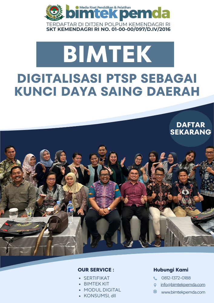 Penguatan kapasitas SDM PTSP menjadi bagian penting dari Bimtek Teknis 2026: Penguatan PTSP untuk Mendorong Daya Saing Daerah, yang dirancang untuk mendukung aparatur menghadapi tantangan digitalisasi pelayanan.