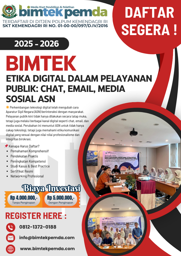 Sebagai pelengkap pembahasan ini, Anda juga dapat membaca artikel pilar Bimtek Customer Service ASN: Profesionalisme, Etika, dan Komunikasi Efektif dalam Pelayanan Publik yang membahas keterampilan dasar pelayanan prima bagi ASN dalam konteks tatap muka maupun digital.