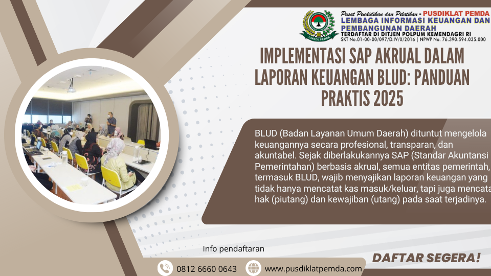 ???? Segera ikuti Bimtek SAP Akrual BLUD 2025 untuk memastikan laporan keuangan instansi Anda sesuai standar, transparan, dan akuntabel.