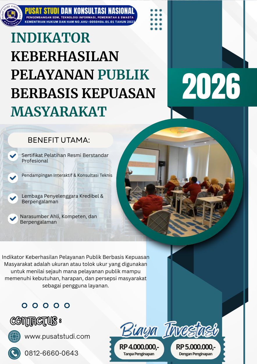 Perkuat kualitas pelayanan instansi Anda melalui pengukuran dan peningkatan kepuasan masyarakat secara berkelanjutan bersama Bimtek Pelayanan Publik Inklusif & Responsif 2026.