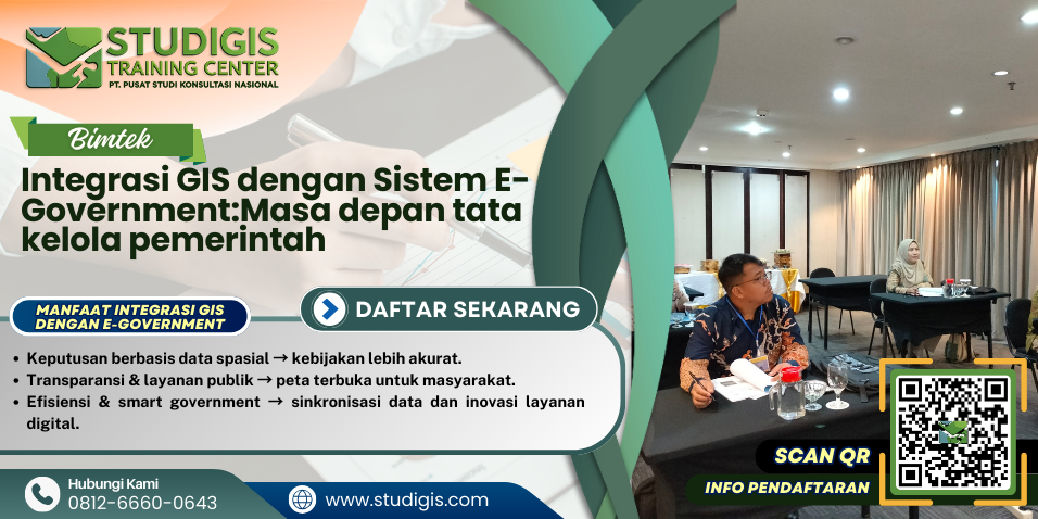 Integrasi GIS dengan Sistem E-Government memperkuat tata kelola pemerintah modern berbasis data spasial dan layanan publik digital.