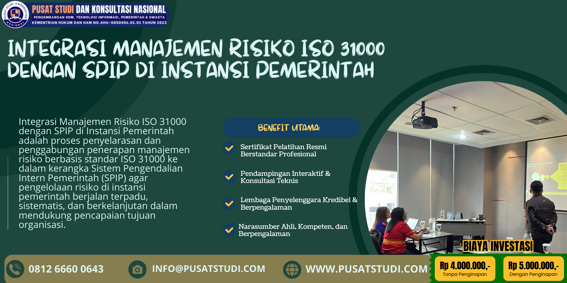 Integrasi manajemen risiko ISO 31000 dengan SPIP membantu instansi pemerintah memperkuat pengendalian intern dan meningkatkan kinerja organisasi.